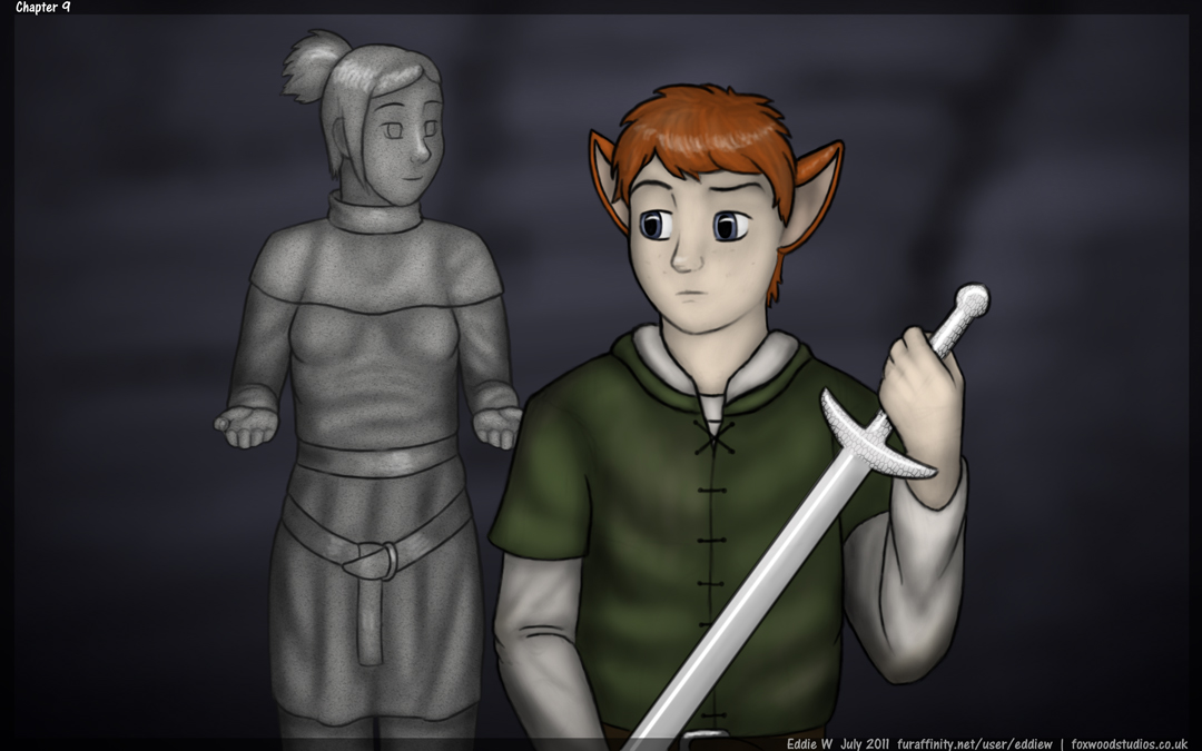 A sharp sword, too. Interesting – why would anyone put a real metal weapon on a statue? Feral investigated more cautiously, reaching out to steady himself on the statue's right hand and nearly falling over backwards in surprise as instead his fingers closed over the unobstructed hilt of the blade, the whole thing coming away in his grip.